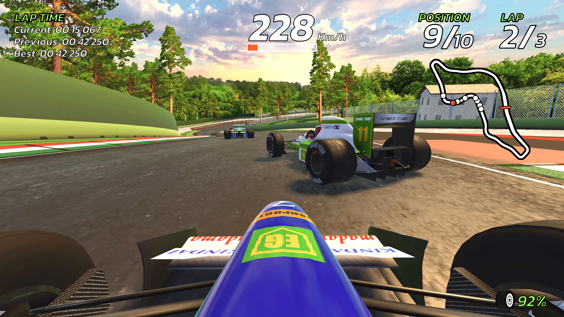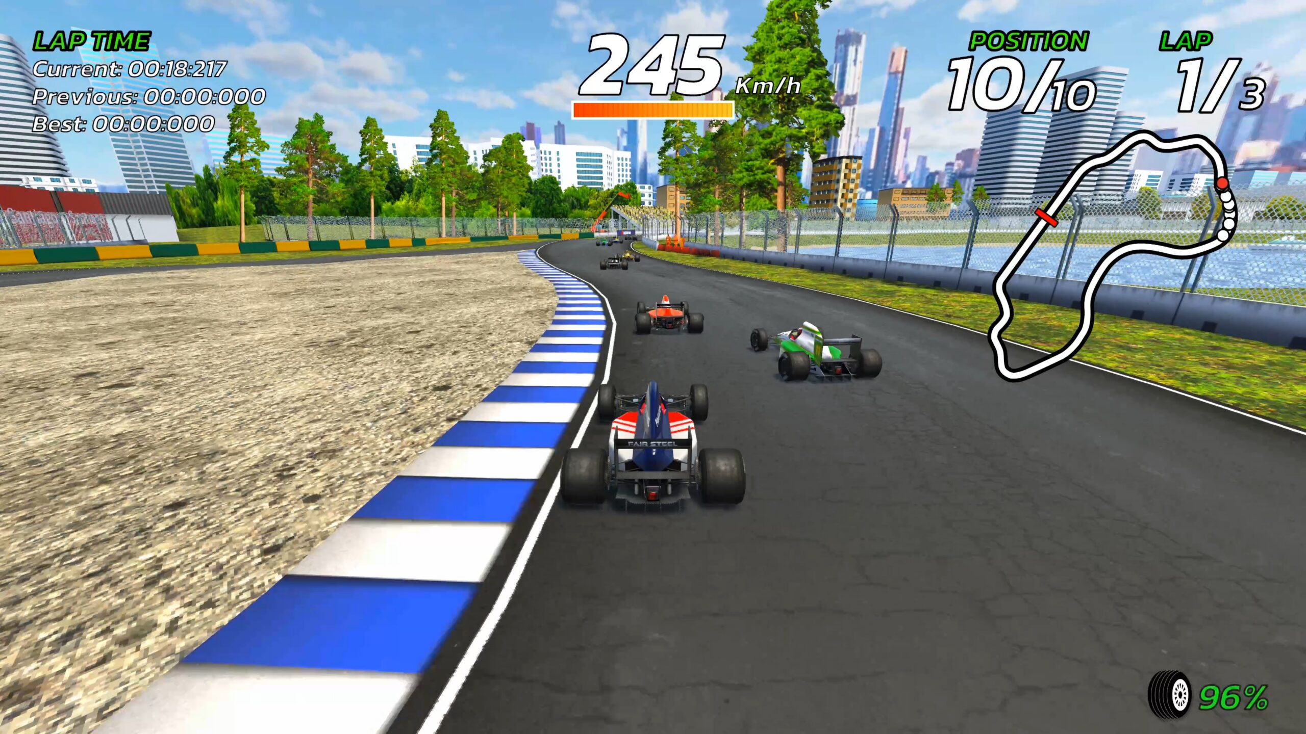 There’s a whole slew of legally distinct Formula 1-style cars with mock brands on them, though they all sort of look the same overall. There are some super-duper fast ones to unlock as well, but that’s going to be a real challenge. There are fourteen tracks to race on, all based on real-world locations. Even Melbourne’s Albert Park is sort of there with an “inspired by” design. More famous circuits like Monza and Monaco also make an appearance, and the locations feel like strong recreations.