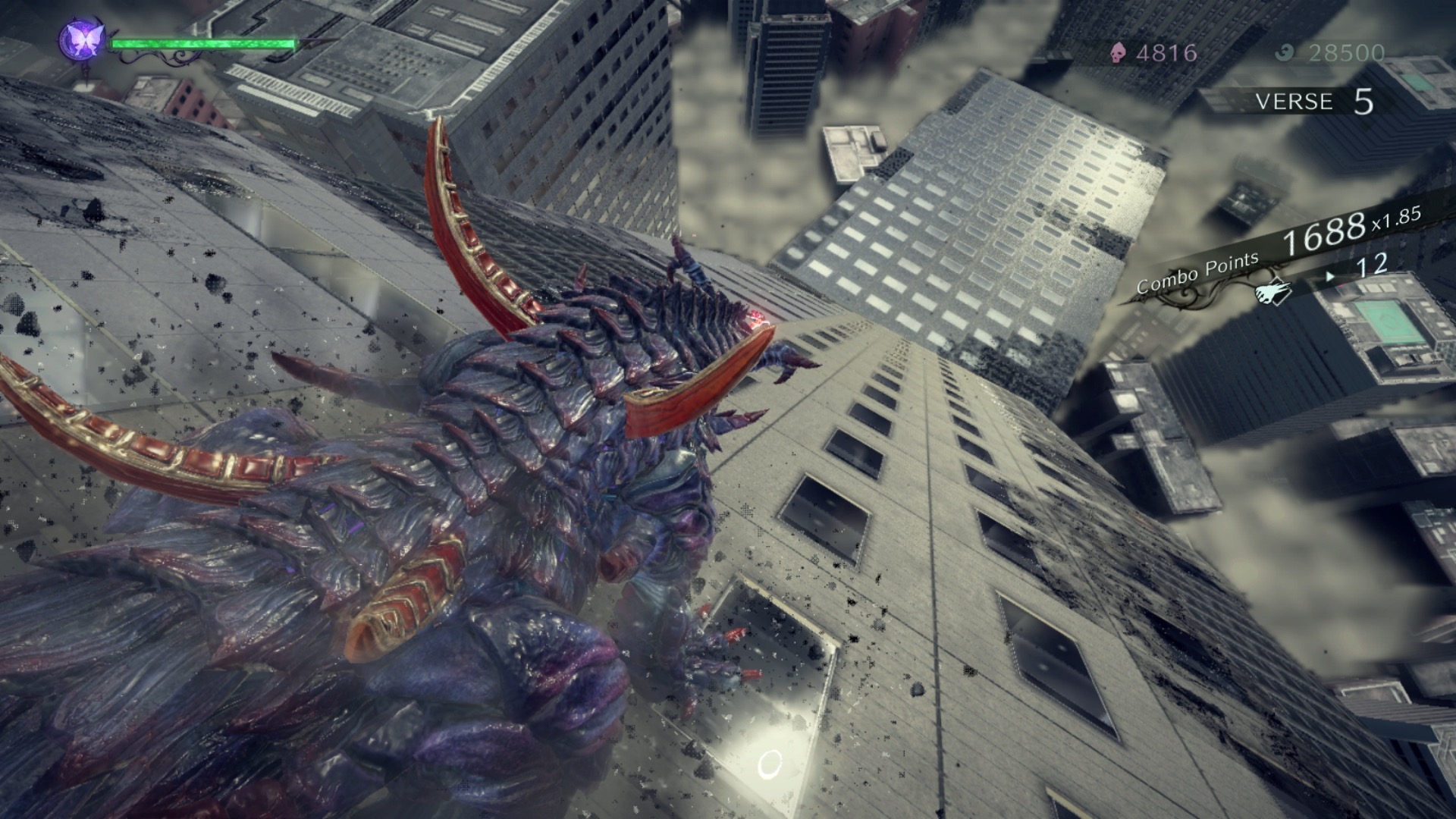 You’re still scored per act within the chapter, with scores you can post online if you choose. To get the best chance at the Pure Platinum ranking for the chapter you’ll need to make sure you’re finding every battle/verse. Most are encounters as you progress through the chapter, and some have to be entered as portals to another arena. It can be easy to accidentally miss some if you tend to go off the beaten track and manage to miss the trigger point, but then that’s where some of the more out-of-the-way verses are! It can be a little annoying to scour the world and still have missed some, but with the bewitchments, there’s already an incentive to revisit chapters. If you want to enjoy the story and wild action moments, you can also bump the difficulty down – you won’t get ranked, but the game won’t keep you from completing it either.