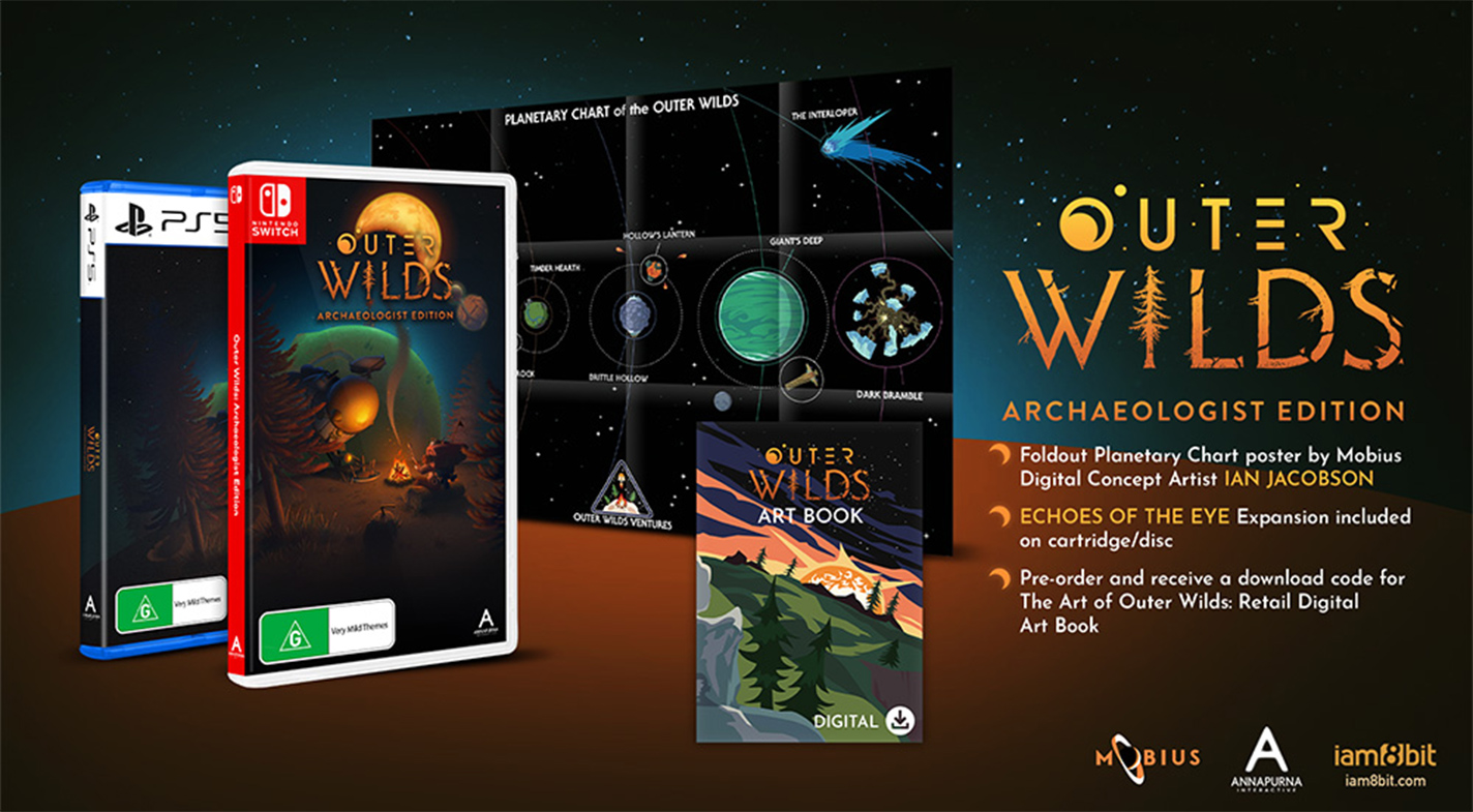 Outer Wilds: Archaeologist Edition is the physical release of the BAFTA Award-winning game, which was released on the Nintendo Switch just last year. This edition includes a foldout planetary chart, the Echoes of the Eye expansion (included on the card), and a download code for The Art of Outer Wilds: Retail Digital Art Book. It’s all complete!