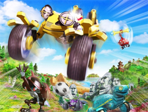 The first thing players will notice when they boot up ExciteBots is the amazing use of colour in the game, which creates an absolutely stunning set of locales. The “vehicles” that you’ll be driving are well detailed, the environments are nicely created to reflect the areas they are based on, and the presentation is geared adequately in a manner to express one thing: a sense of speed. And while players will be speeding past most of the environments, and your screen is filled with a flurry of phantasmagorical colours, the perfect combination of environment and vehicles will really become apparent. While the graphics are by no means ground breaking for the Wii, they do offer a very nice improvement over ExciteTruck (and as I said before, a colourful one, too).