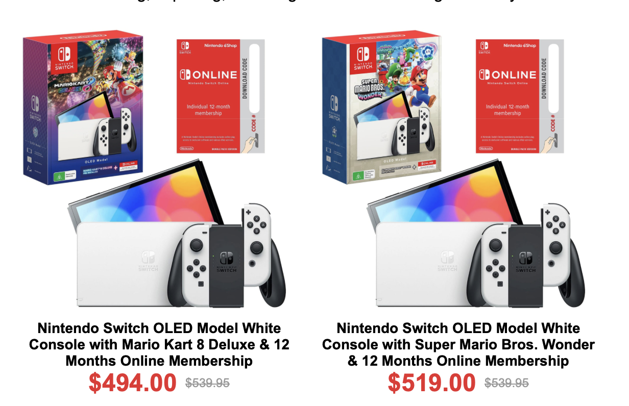 Gamesmen have a good price on Switch OLED bundles, including the Switch OLED with Mario Kart 8 Deluxe, and 12 months of online for $494. The Wonder bundle is a little bit more too. Unlikely you’re wanting an original Switch so close to the Switch 2 reveal though.