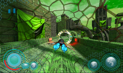 The gameplay itself is really confusing at first. It plays like what I’d imagine a Star Fox racing game to be, allowing the player to do barrel rolls while automatically moving you along. You don’t control the acceleration at all, which surprisingly works pretty well. Flying through tight corridors, you collect health, weapons, and speed boosts via giant rings scattered across each track. It’s unclear what each of these rings do at first and what benefits to the player each of them provide, leading to my first few races being a total mess. I was totally lost and overwhelmed by all the elements presented. The controls, items, or even what the HUD represents – none of it is clear at first glance. The only time the game decides to try to teach the player is within the loading screens of the Story Mode. There’s no ingame manual or anything else you can check otherwise, which is a little shocking.