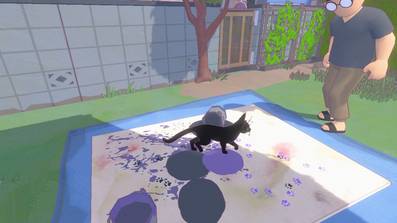 Controlling the kitty is pretty fun, if not a little wonky in places. There are plenty of cat things to do, like pouncing on birds, slinking under fences and knocking stuff off fences and ledges. The game also has a dedicated meow button, which never gets old. You can interact with a whole host of things in the game, including people, nuzzling up to them or tripping them up and stealing their phones. There are stores to break into, plus there’s fancy hats to collect to accessorise Kitty with. These hats don’t change how you move; they’re just super cute – although I’ve never met a cat who likes wearing anything on its head.