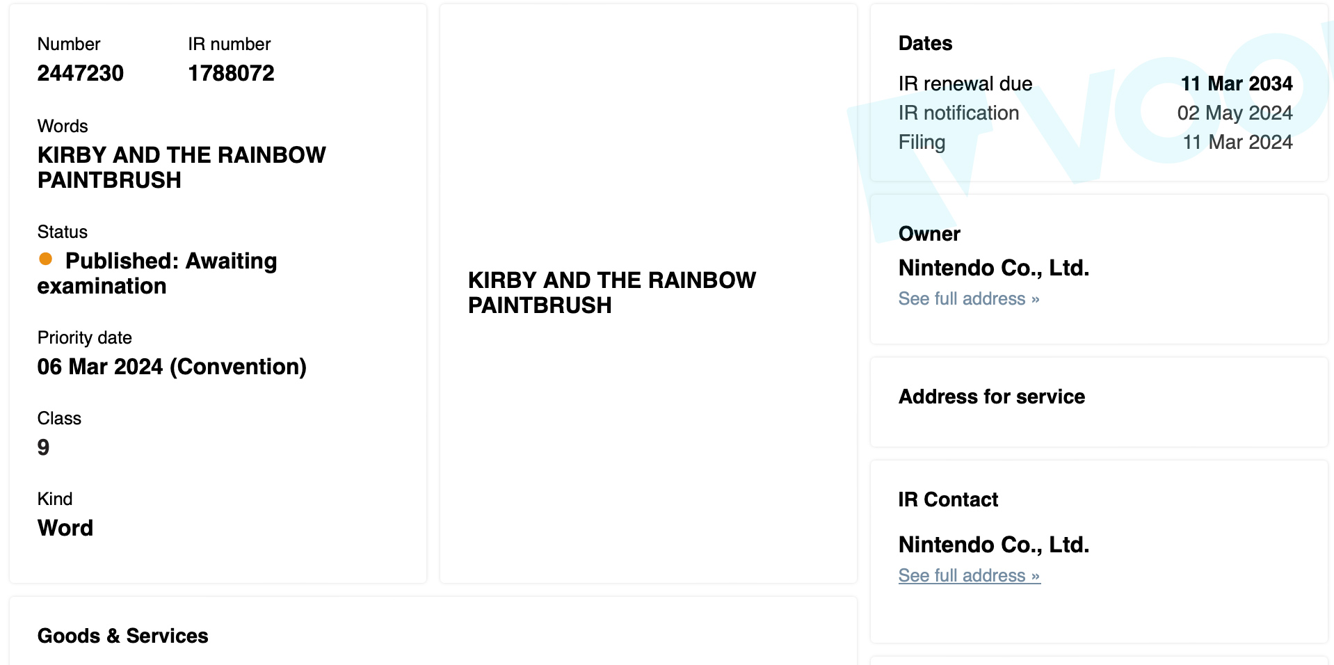 New trademarks filed for Kirby and the Rainbow Paintbrush, Fullblox