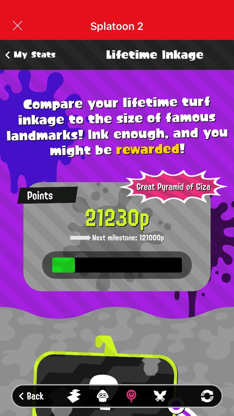 The application will be host to ‘SplatNet 2’, the Splatoon 2 component of the app, which looks to be completely themed and offer some great ways to keep in touch with Inkopolis. SplatNet 2 displays stage schedules, gear for sale, and a whole range of statistics. You’ll be able to keep track of how much ink you’ve used over the entire time you’ve played as well and compare them to famous landmarks.
