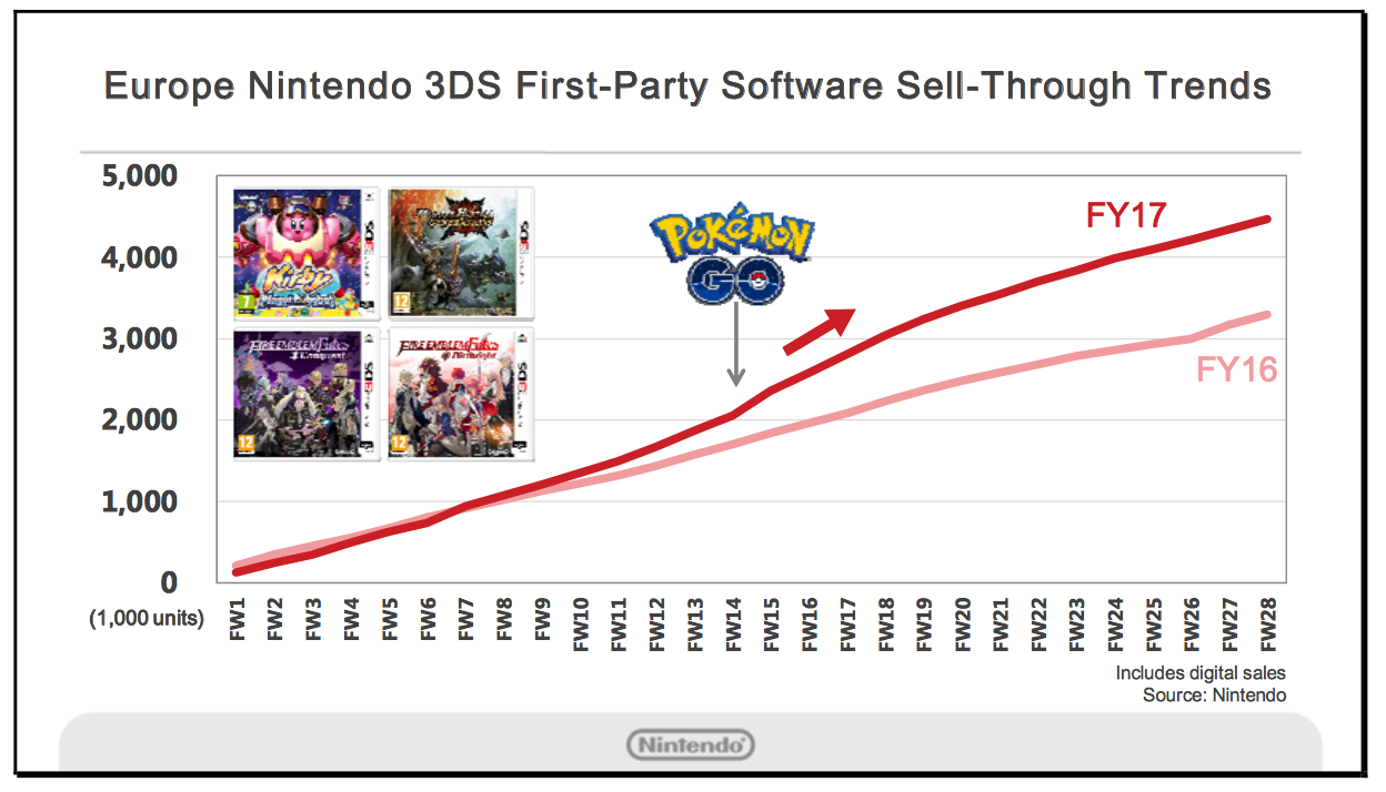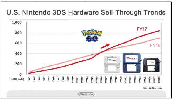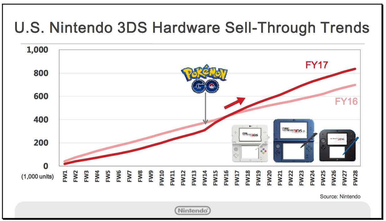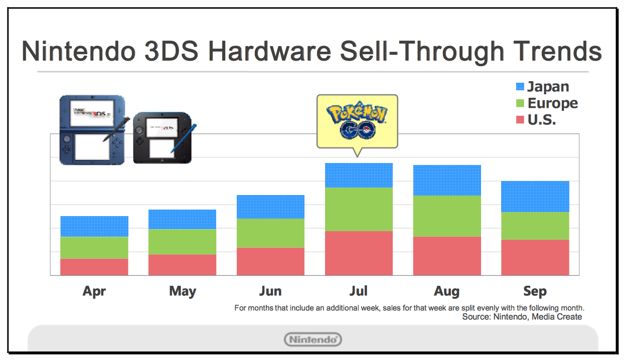 What about the effect the game has had on Nintendo as well? Despite not actually making the game, their share price soared, when investors figured it out it dropped off just a little. Pokémon Sun and Moon were released and have sold millions, but more importantly, Nintendo saw a year-on-year rise in sales for older Pokémon games and Nintendo 3DS hardware.
