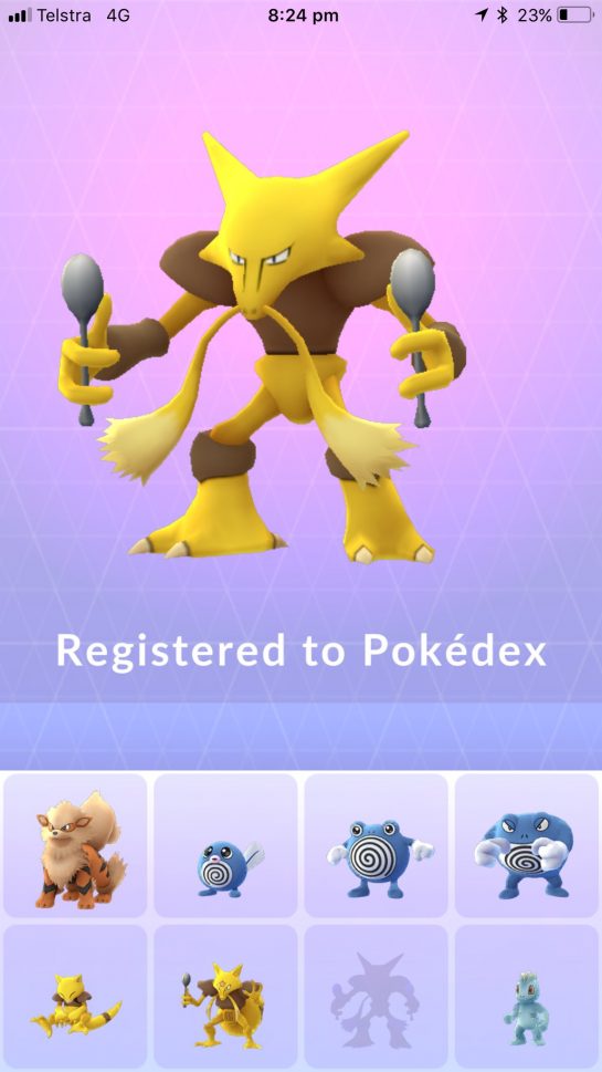 Tonight I drove 15 minutes to a gym for a Pokémon raid. It had an Alakazam, the last Pokémon I needed to complete my Generation 1 Pokédex. It took me a year but I did it, guess I have another year to do the next generation?