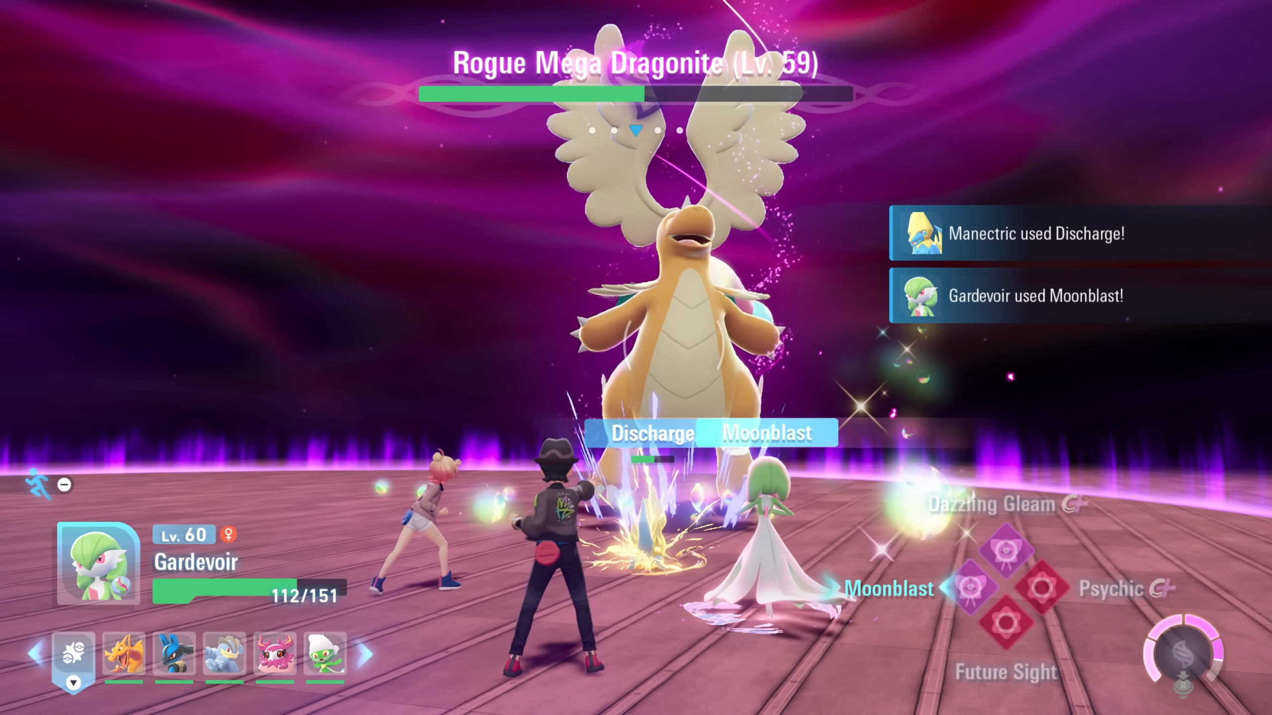Complicating that equation considerably is the inclusion of Mega Evolution. I’m very much on the record as saying that Mega Evolution is the worst generational “gimmick”, at least compared to Dynamax and Terastalization, so I was a little bit surprised when I found myself actually enjoying it. Popping a Mega in battle changes all of its moves to powerful Plus moves, which increases their power and also deals extra damage to Rogue Mega Pokémon, and while you can Mega Evolve as many times as you like in a battle, and as many Pokémon as you like, there is a gauge that ticks down while you’re using one, and once it’s empty you have to build it up again by battling in close proximity to your Pokémon.