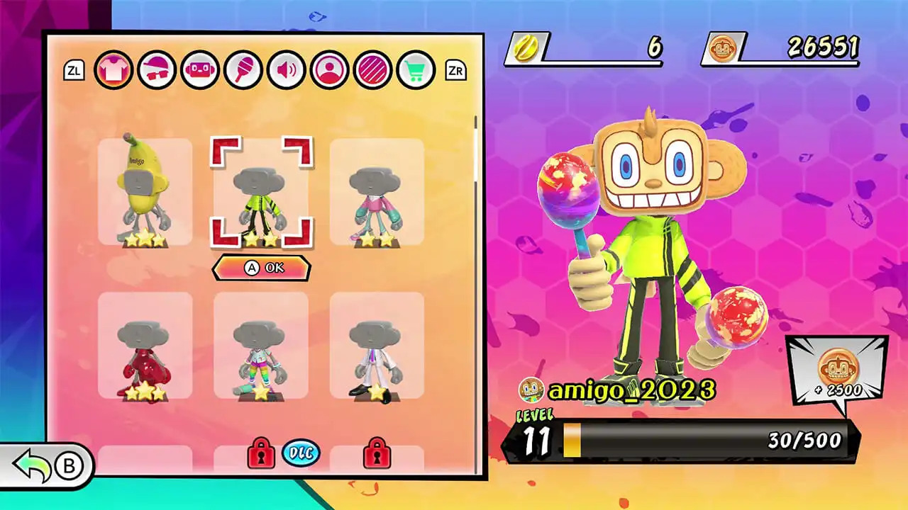 World Party mode pits your Amigo in a battle Royale against other Amigo’s from around the world online, with sixteen players battling in smaller groups to avoid getting knocked out. This mode comes with powerups/weapons that can really mess up someone’s progress. I found myself getting hit by the ones that just straight-up messed with my score by removing the incoming notes. Given how often I got hit with the item, it was pretty discouraging. I never found it possible to bounce back from it. It’s not a bad battle royale mode, but the items can be a little too powerful to come back from.
