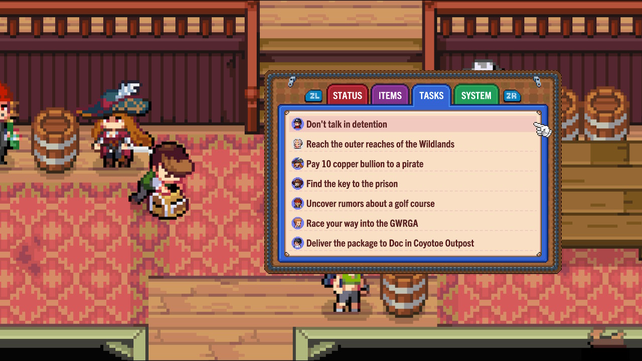 The story sees the return of your main character and his companions from the first game. A somewhat incohesive series of events ensue involving gangs, a conniving mega-corporation, dungeons, espionage, pirates, royals, spirits, and lots of different sports. It’s all rather nonsensical and struggles to paint a particularly coherent narrative, but the beats along the way are plenty of fun nonetheless, and undoubtedly remain the highlight of the package. With sharp writing and witty humour, and excellent use of text speed, size and movement used to great effect to convey emotion, there is no shortage of laughs to be had. An option to slightly increase the text speed would have been nice, but aside from that, you’ll no doubt find yourself chuckling away at fantastical adventure and its characters.