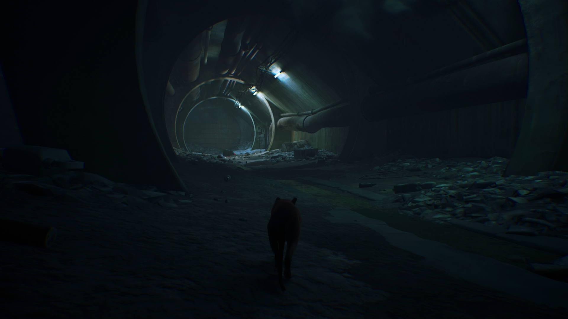 The game is pretty linear as you progress through its chapters. While you won’t see everything on your first playthrough, the heart of the game—the story—is presented in segments, interspersed with open-area exploration that you can take your time to enjoy. It reminded me a bit of a tighter Breath of the Wild: the main storyline is always there for you to follow, but you’re free to explore the world as the cat and carve out your own path. Reconstructing B-12’s corrupted memories serves as the main “side quest,” helping your companion uncover their identity. The game’s stories are all interconnected, and you’ll find yourself eager to keep playing, chapter by chapter, to uncover where it’s all leading. Like a good book, it’s hard to put down.