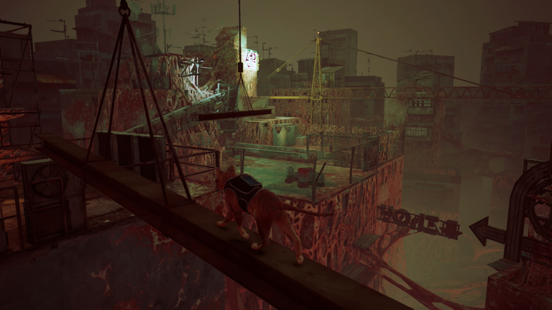 The city in Stray feels like a big place for such a small cat. While the dark, neon-lit streets might initially seem narrow, you’ll eventually come across areas where the city’s vistas open up, revealing the Zurk infestation and the remnants of whatever life once existed, slowly being eroded. Some of the robots dream of life outside, but their living space is being consumed from within. Figuring out how this little cat can make a difference is all part of the fun.