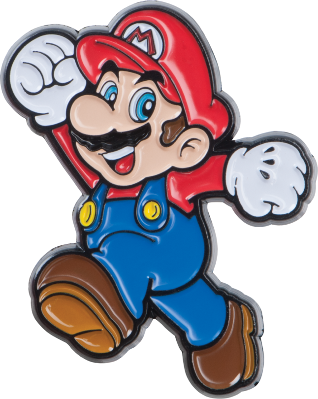 Launching in December these Super Mario high-gloss enamel pins go for the classic Super Mario art style instead and feature a ton more characters. There are 8 pins to collect, including one Mario one that’s gold.