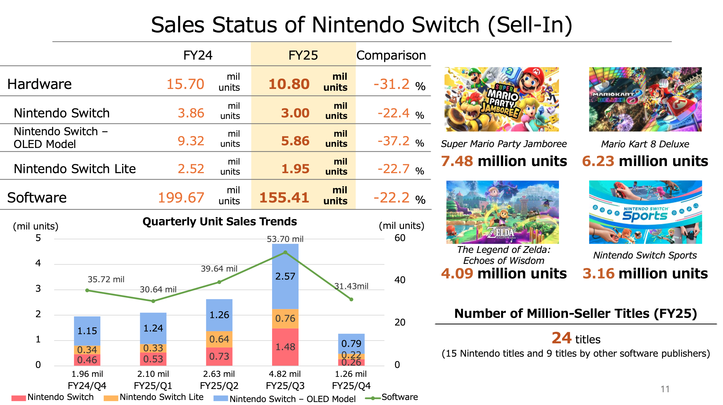 This is generally Nintendo’s most uneventful quarter — and in year eight of the Switch, even more so. See you next time for some Switch 2 results.
