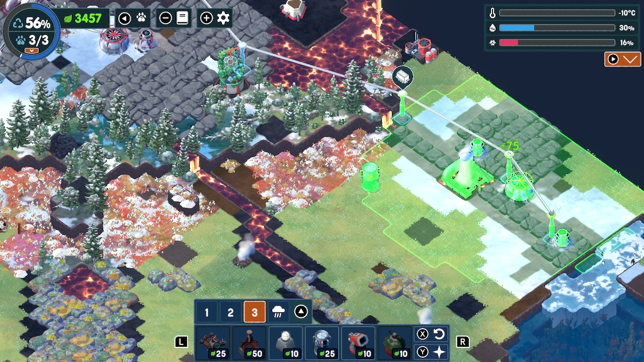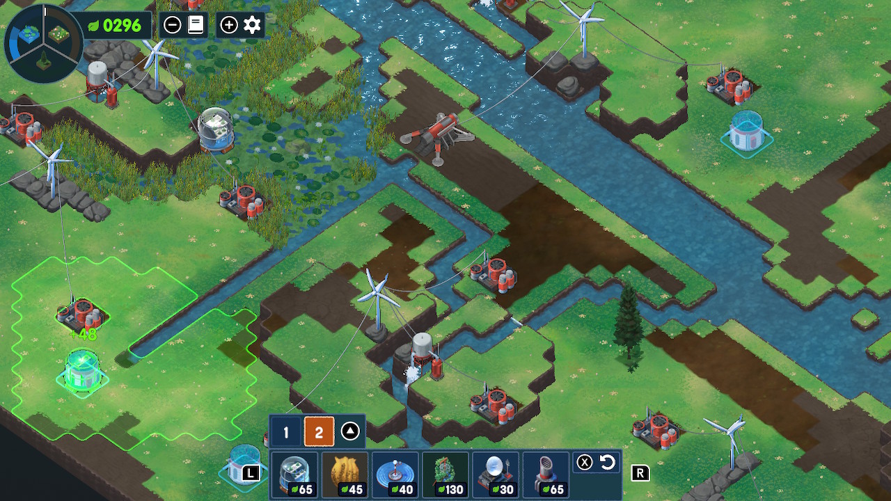 To get the planet back on track, you’ll need advanced technology to help you get everything back to the way it was. The buildings you create need power, keeping with the eco theme you use wind, and geothermal to power them. These other buildings make fertile soil, adjust the weather, pump water around, and clean it all up. There are four different biomes to clean up; each is one level in the game and requires different tactics and tech to complete.