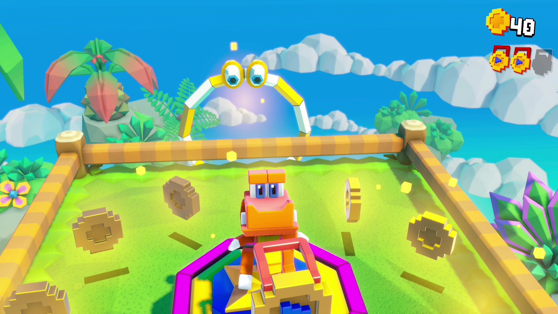 Q.U.I.Ds are another all new collectable in the game (they’re coins), and these are used for purchasing Tonics (more health, filters, modifiers) and cosmetics (hats, glasses, shorts, etc). They are also hidden in hard to reach places and “around the back” of objects, like coins in Super Mario Galaxy. They provide small rewards for exploring and poking around in the game, something the first game was missing. Rextro’s Arcade returns as well, and the mini-games within it are much better and actually fun this time around, with a genuinely retro look. Tick, that’s another big complaint of mine fixed.